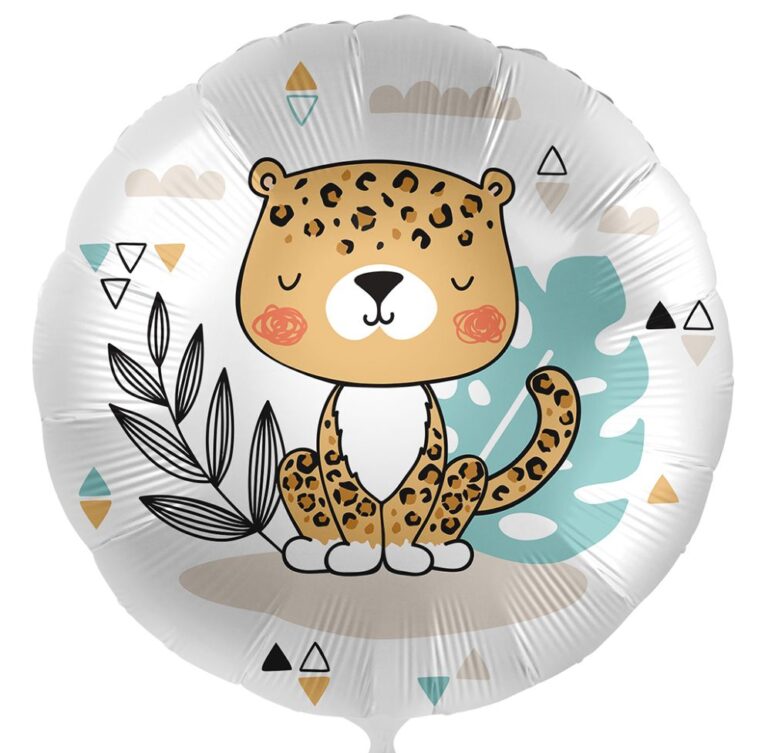Στρογγυλό μπαλόνι με την πιο γλυκιά λεοπάρδαλη. Ιδανική επιλογή για να το χαρίσεις σε παιδάκι που αγαπά τα ζωάκια ή και για να στολίσεις τον χώρο του πάρτυ ή της βάπτισης με θέμα τα ζώα της ζούγκλας!
