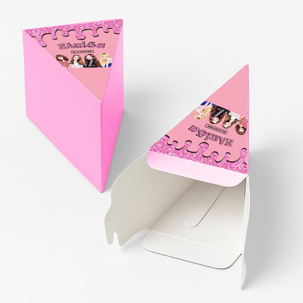 Χάρτινη τούρτα με θέμα BlackPink, με το όνομα του παιδιού & εντυπωσιακό design. Η χάρτινη τούρτα αποτελείται από 12 ξεχωριστά κομμάτια, τα οποία όταν συναρμολογηθούν σχηματίζουν έναν ολοκληρωμένο κύκλο – μια εντυπωσιακή παρουσίαση για κάθε είδους εκδήλωση. Κάθε κομμάτι είναι σχεδιασμένο σαν φέτα τούρτας και λειτουργεί ταυτόχρονα ως κουτάκι, ιδανικό για γλυκά ή μικρά δωράκια.