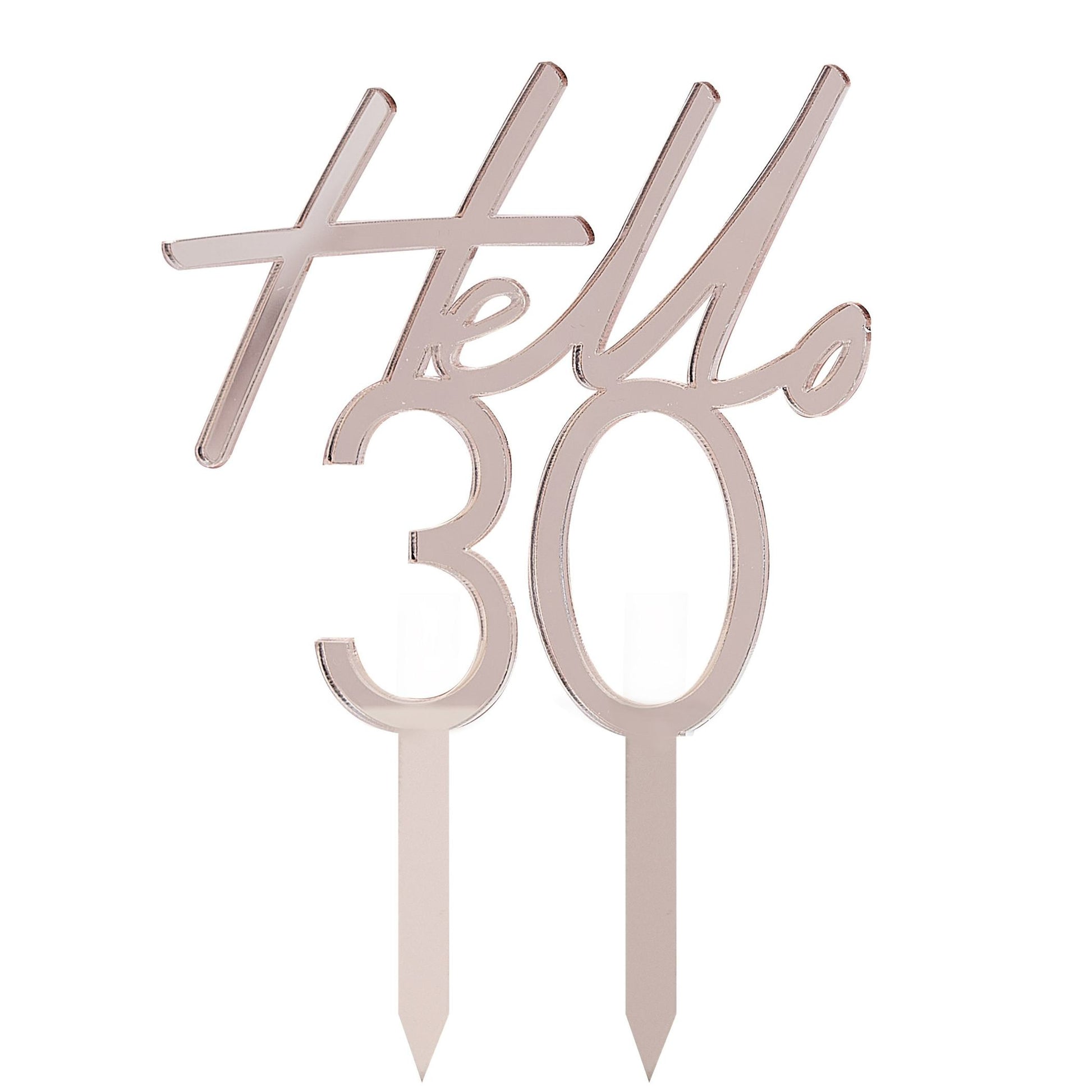 Ακρυλικό topper τούρτας "Hello 30" σε ροζ-χρυσό, για να υποδεχτείτε με τον πιο όμορφο τρόπο τη νέα δεκαετία!