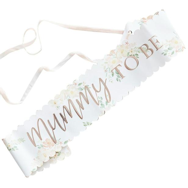 Εντυπωσιακή κορδέλα Mummy To Be με λουλούδια και rosegold εκτύπωση, για να φορέσεις στο baby shower πάρτυ και να βγάλεις μοναδικές φωτογραφίες!