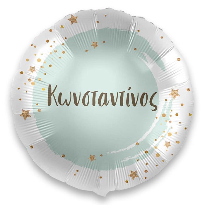 Εντυπωσιακό μπαλόνι με το όνομα Κωνσταντίνος σε χρώματα βεραμάν, χρυσό και λευκό. Διακοσμήσετε μοναδικά τη βάπτιση ή το πάρτυ του παιδιού σας!