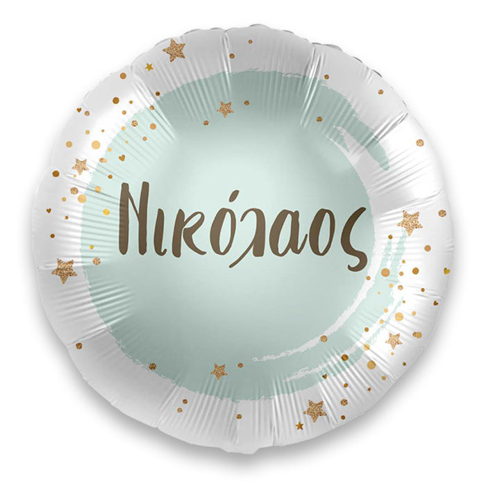 Εντυπωσιακό μπαλόνι με το όνομα Νικόλαος σε χρώματα βεραμάν, χρυσό και λευκό. Διακοσμήσετε μοναδικά τη βάπτιση ή το πάρτυ του παιδιού σας!