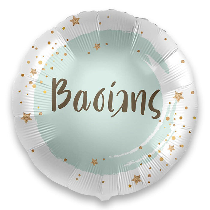 Εντυπωσιακό μπαλόνι με το όνομα Βασίλης σε χρώματα βεραμάν, χρυσό και λευκό. Διακοσμήσετε μοναδικά τη βάπτιση ή το πάρτυ του παιδιού σας!