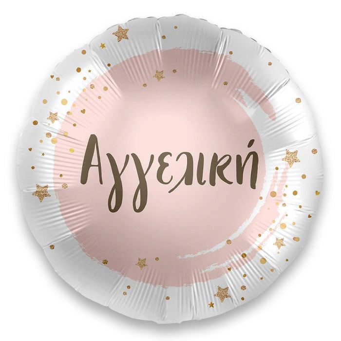 Εντυπωσιακό μπαλόνι με το όνομα Αγγελική σε χρώματα ροζ, χρυσό και λευκό. Διακοσμήσετε μοναδικά τη βάπτιση ή το πάρτυ του παιδιού σας!