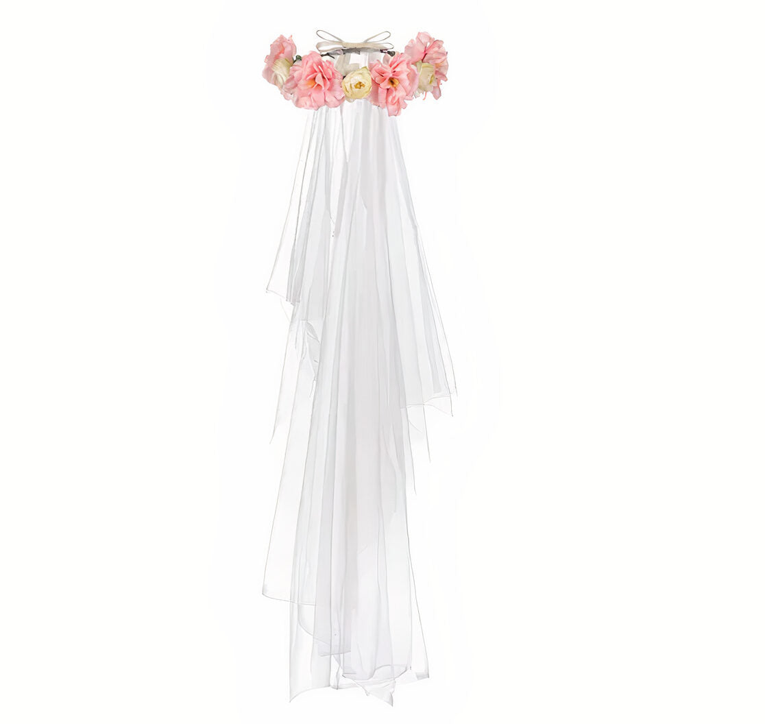 Εντυπωσιακό στεφάνι με κρεμ και ροζ λουλούδια μαζί με πέπλο, για να φορέσει και να ξεχωρίζει η νύφη την ημέρα του Bachelorette πάρτυ!