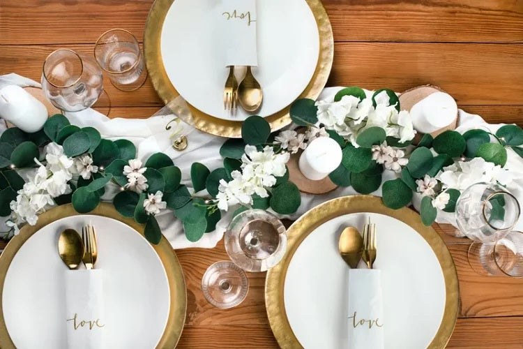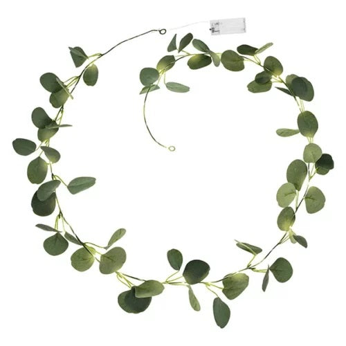 Γιρλάντα με φωτάκια LED από φύλλα Ευκάλυπτου για τη διακόσμηση του γάμου, της βάπτισης ή της εκδήλωσης! Μπορείς να στολίσεις με αυτό τον μπουφέ, την πόρτα ή τα παράθυρα του χώρου!