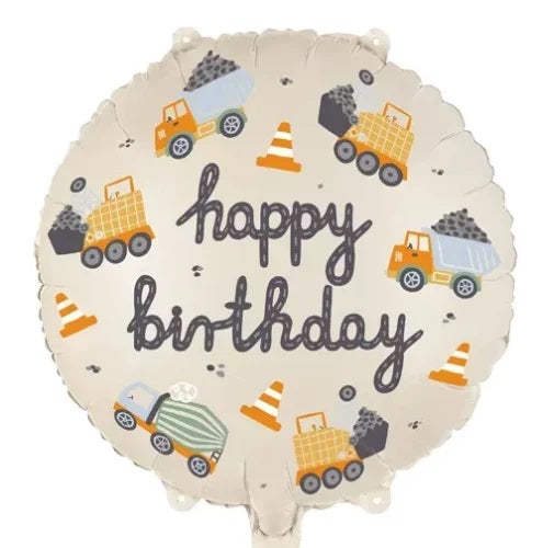 Στρογγυλό μπαλόνι Γενεθλίων με σχέδιο εργοτάξιο, για μια μοναδική διακόσμηση πάρτυ ή για να ευχηθείτε χρόνια πολλά!