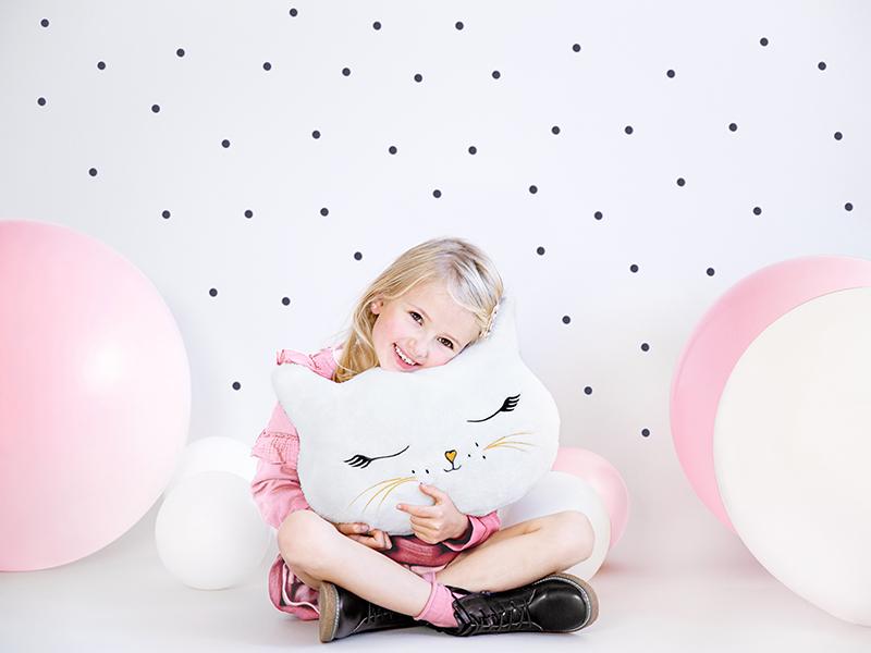 Βελούδινο μαξιλάρι Γατούλα σε λευκό χρώμα με κεντητές λεπτομέρειες!