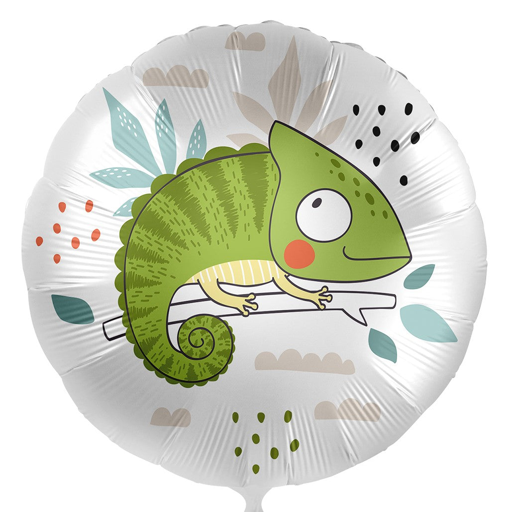 Στρογγυλό μπαλόνι με πονηρούλη Χαμαιλέοντα. Ιδανική επιλογή για να το χαρίσεις σε παιδάκι που αγαπά τα ζωάκια ή και για να στολίσεις τον χώρο του πάρτυ ή της βάπτισης με θέμα τα ζώα της ζούγκλας!