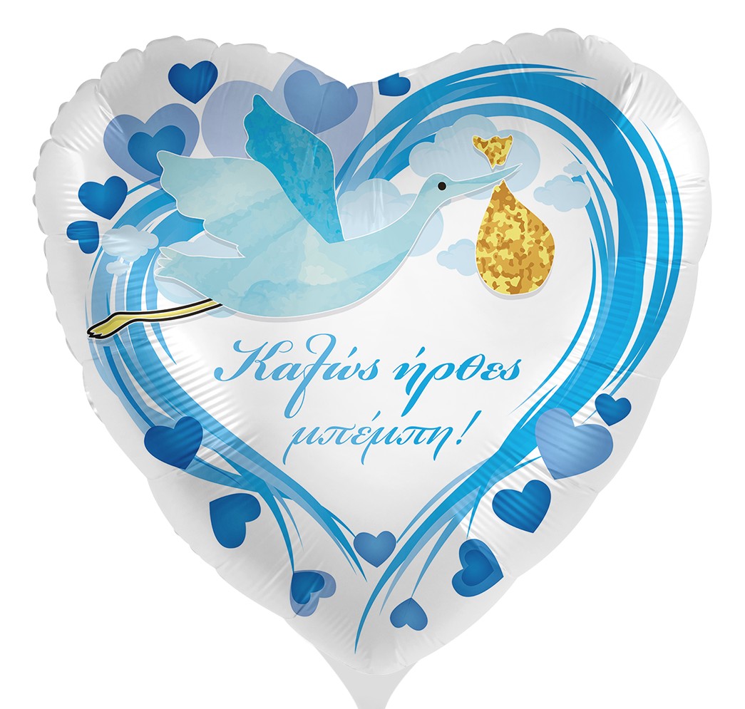 Χαρίστε στο νεογέννητο μωράκι μια ξεχωριστή υποδοχή! Μπαλόνι σε σχήμα καρδιάς με πελαργό και μήνυμα ""Καλώς ήρθες Μπέμπη""!