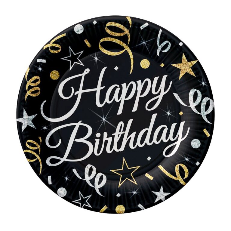 Πιάτα πάρτυ με σχέδιο κομφετί και μήνυμα happy birthday!