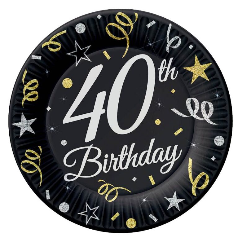 Πιάτα πάρτυ με σχέδιο κομφετί και μήνυμα happy 40th birthday!