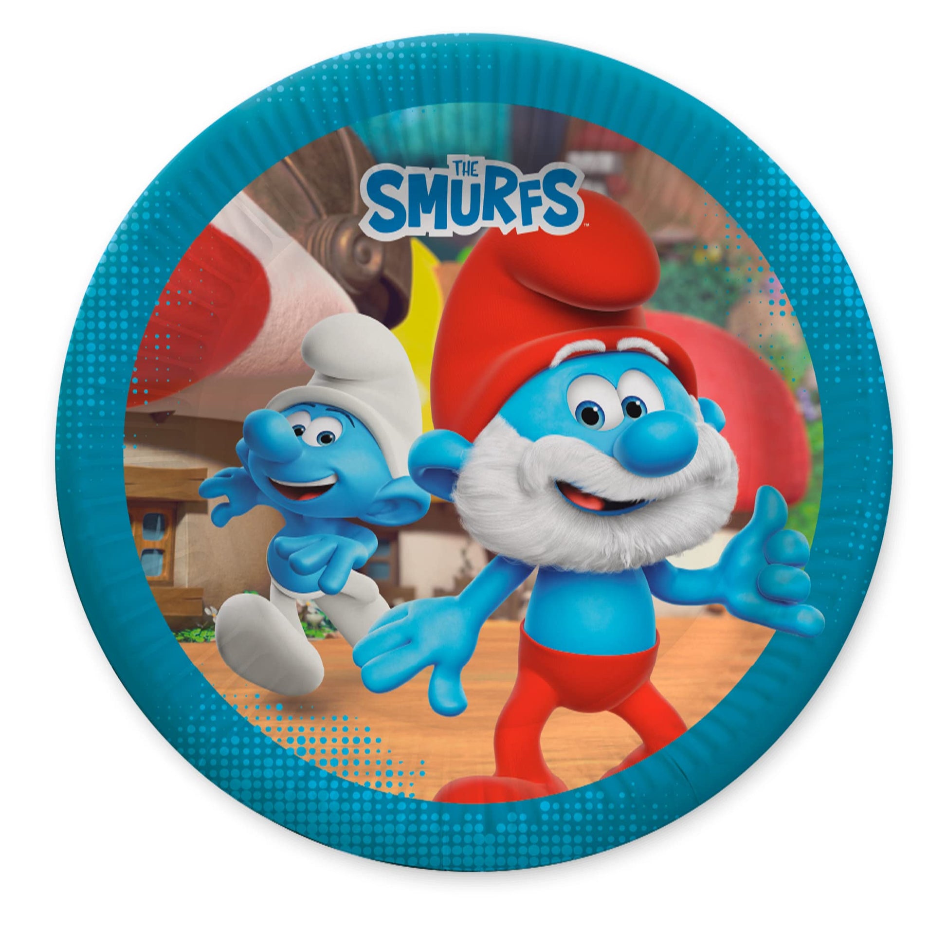 Πιάτα με χαρούμενα σχέδια των αγαπημένων Στρουμφ, ιδανικές για παιδικά πάρτι, βαπτίσεις και θεματικά τραπέζια με στρουμφο-διάθεση!