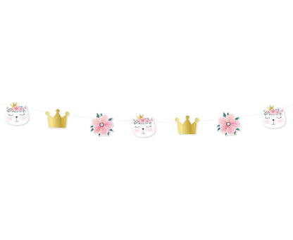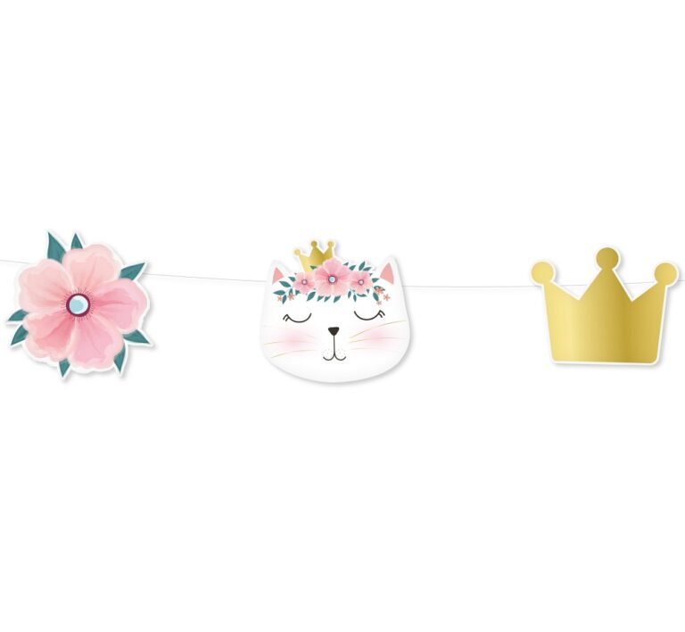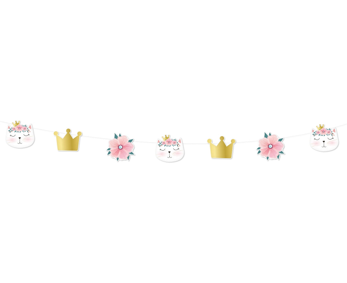 Γιρλάντα με σχέδιο γατούλα, λουλούδια και κορώνα, για να διακοσμήσεις το πάρτυ γενεθλίων ή τη βάπτισης της μικρής σου!