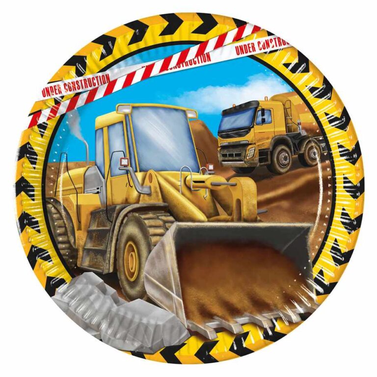 Πιάτα φαγητού με θέμα οχήματα Εργοταξίου, για το μπουφέ του πάρτυ γενεθλίων με θέμα Under Construction!