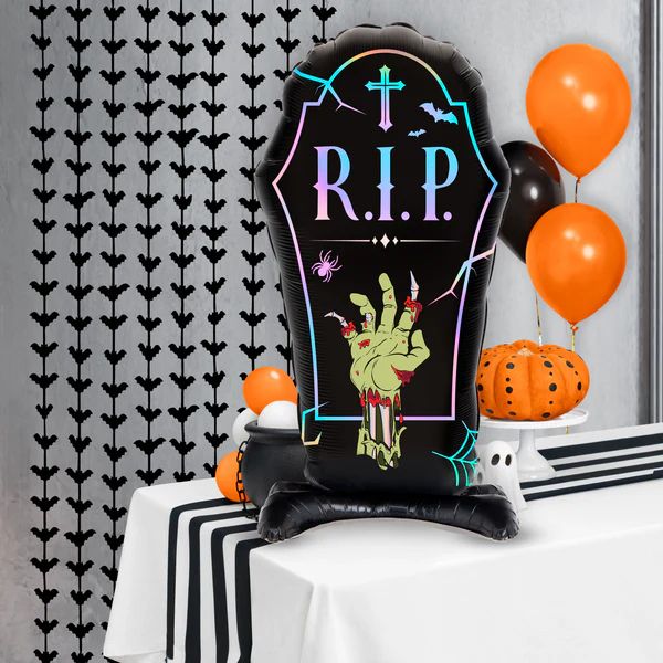 Φτιάξτε μια διασκεδαστικά… τρομακτική ατμόσφαιρα με το μπαλόνι σε σχήμα ταφόπλακας RIP. Ιδανικό για Halloween πάρτι με χιούμορ και spooky διάθεση!