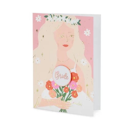 Ευχετήρια κάρτα 'Cheers to the Brides' και μαζί αποσπώμενη μεταλλική καρφίτσα Bride! Γράψε τις ευχές σου για τη μέλλουσα νυφούλα σε αυτήν την ξεχωριστή κάρτα με την καρφίτσα bride που μπορεί να φορέσει στο bachelor πάρτυ της!