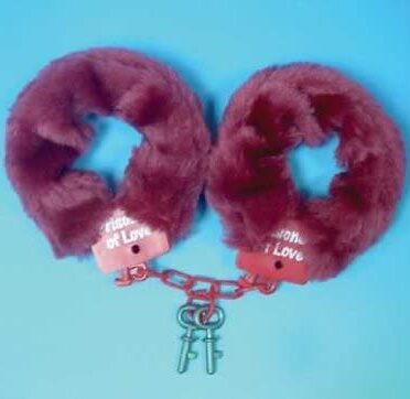 Χειροπέδες πλαστικές με κόκκινη γούνα και μήνυμα ""Prisoners of Love""!