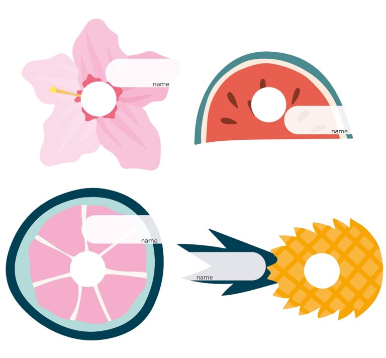 Δαχτυλίδια ποτηριών με καλοκαιρινά σχέδια και ετικέτα με όνομα, για να ξεχωρίζουν τα ποτά σας στο θεματικό πάρτυ!