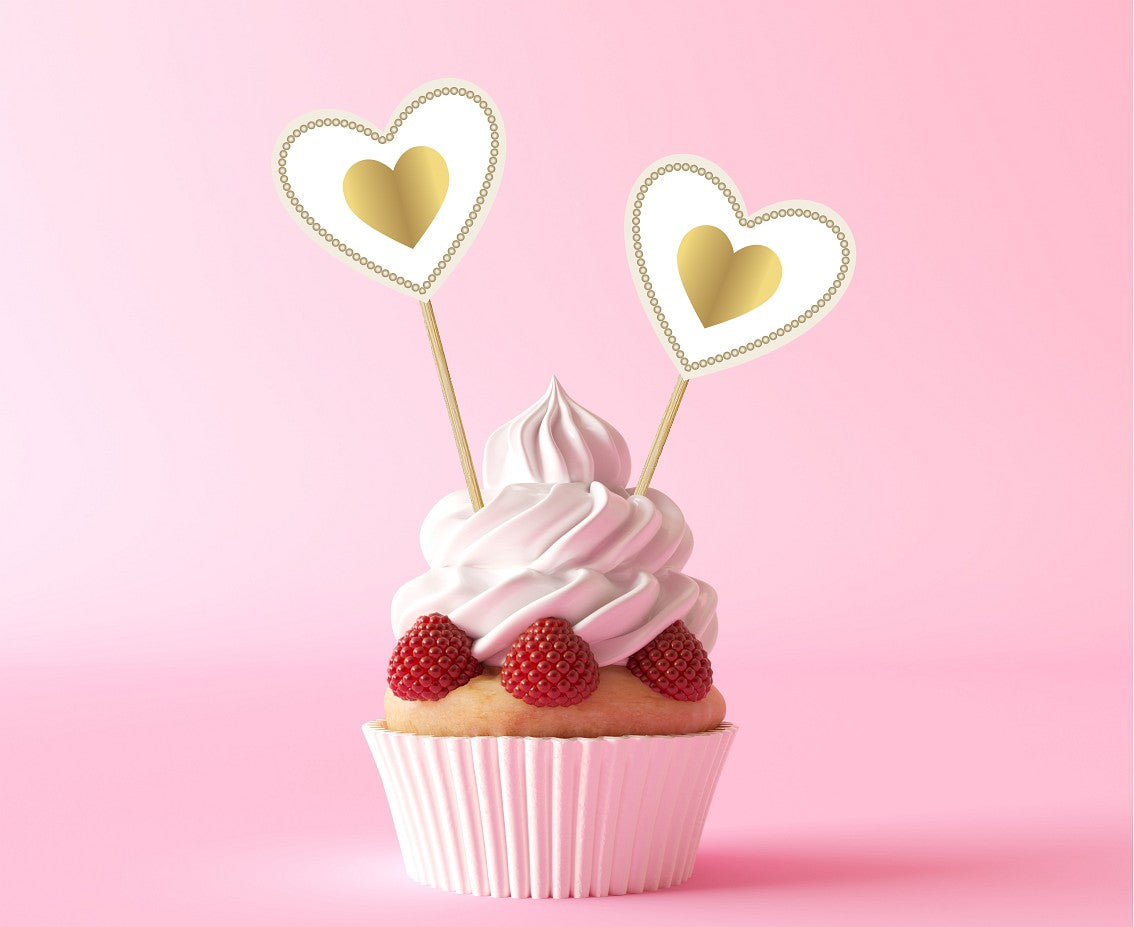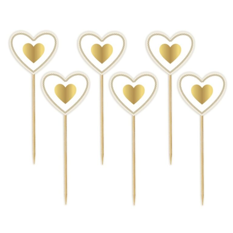 Οδοντογλυφίδες σε σχήμα καρδιάς σε άσπρο & χρυσό χρώμα, για να στολίσετε τα φαγητά και τα γλυκά στο γιορτινό τραπέζι!