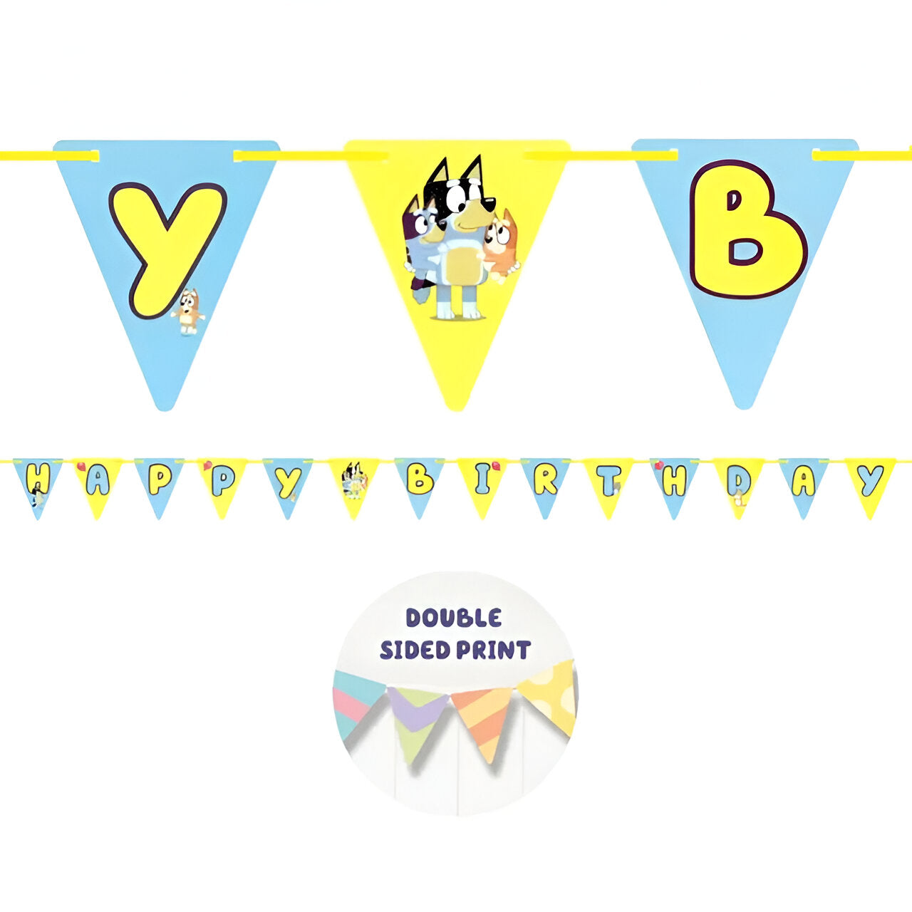 Τριγωνικά Σημαιάκια 'Happy Birthday' με την αγαπημένη Bluey και την παρέα της. Διακόσμησε μοναδικά το πάρτυ γενεθλίων και υποδέξου τους καλεσμένους σου!