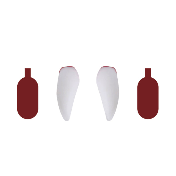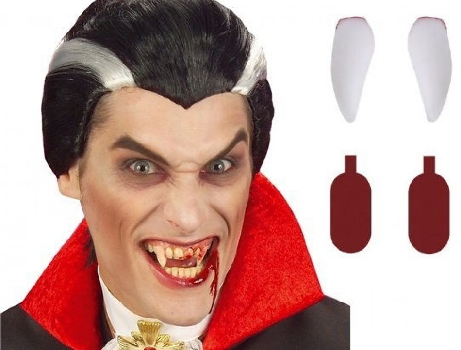 Κυνόδοντες Βρυκόλακα με μπουκαλάκια ψεύτικο αίμα, για να έχεις την πιο τρομακτική αμφίεση στις φετινές Απόκριες ή στο Halloween party!