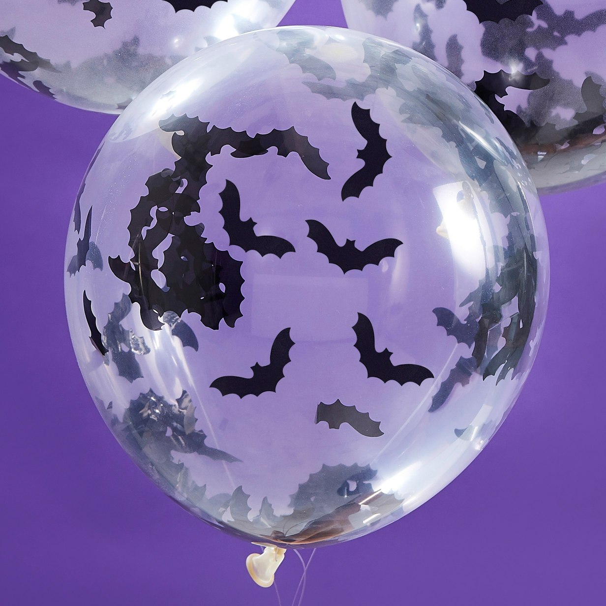 Latex διάφανα μπαλόνια με κομφετί σε σχήμα νυχτερίδας, για μια εντυπωσιακή διακόσμηση στο θεματικό πάρτυ γενεθλίων Batman ή στο Halloween!