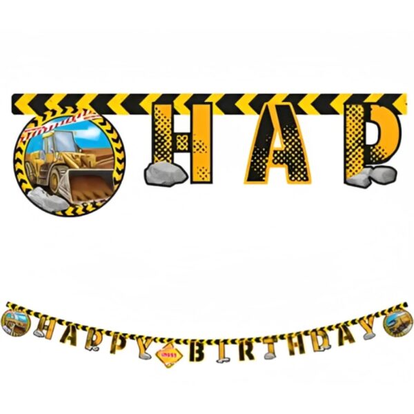 Γιρλάντα Happy Birthday με θέμα οχήματα Εργοταξίου, για τη διακόσμητη του πάρτυ γενεθλίων!