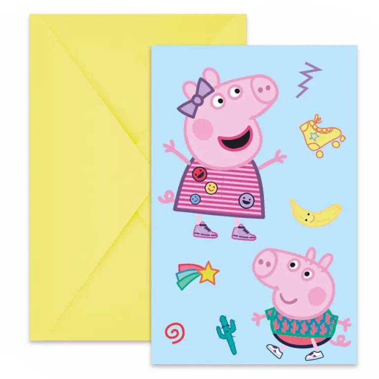 Προσκλήσεις με φάκελο και θέμα Πέππα το Γουρουνάκι, για να μοιράσετε στους καλεσμένους του πάρτυ!