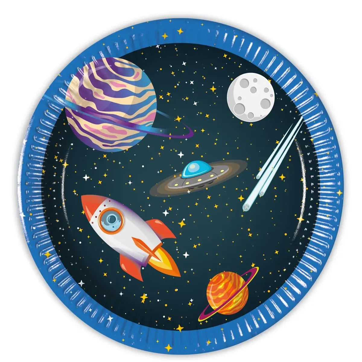 Πιάτα γλυκού Διαστημόπλοιο και πλανήτες, για το μπουφέ του θεματικού πάρτυ γενεθλίων.