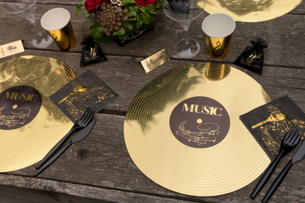 Εντυπωσιακό σουπλά τραπεζιού με σχέδιο χρυσό/πλατινένιο δίσκο μουσικής, για ένα υπέροχο στολισμό στη μουσική εκδήλωση, στο ωδείο, στο θεματικό πάρτυ!