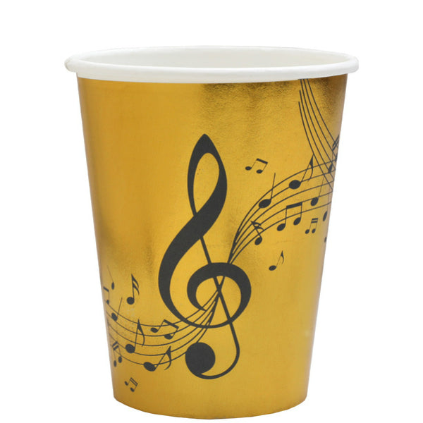 Ποτήρια χρυσά με σχέδιο μουσικές νότες, για ένα υπέροχο στολισμό στη μουσική εκδήλωση, στο ωδείο, στο θεματικό πάρτυ!