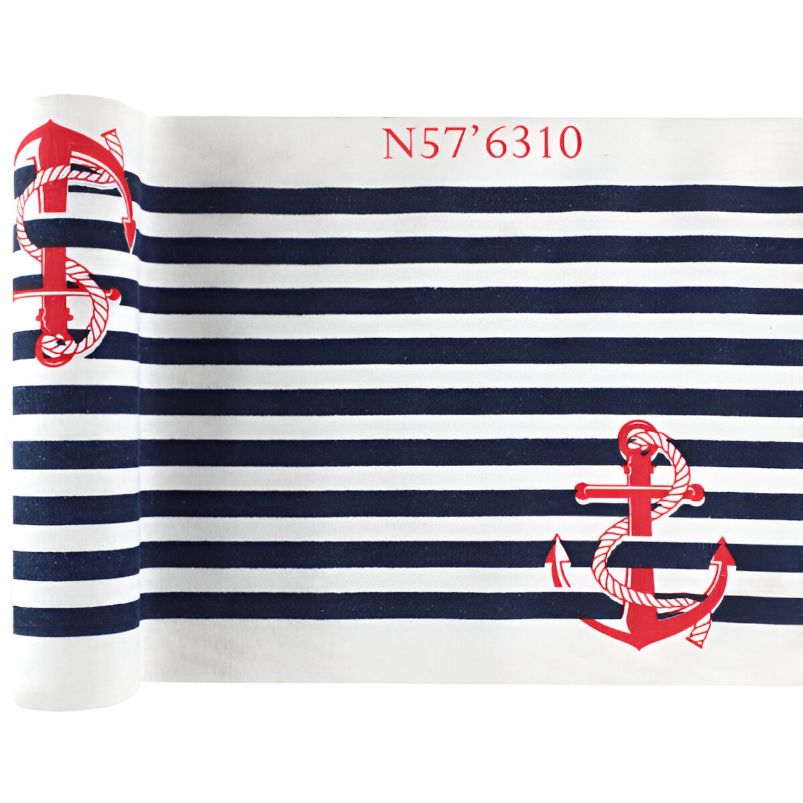 Runner με κόκκινες άγκυρες, μπλε ρίγες και συντεταγμένες, για να διακοσμήσεις το γιορτινό τραπέζι με ναυτικό θέμα!