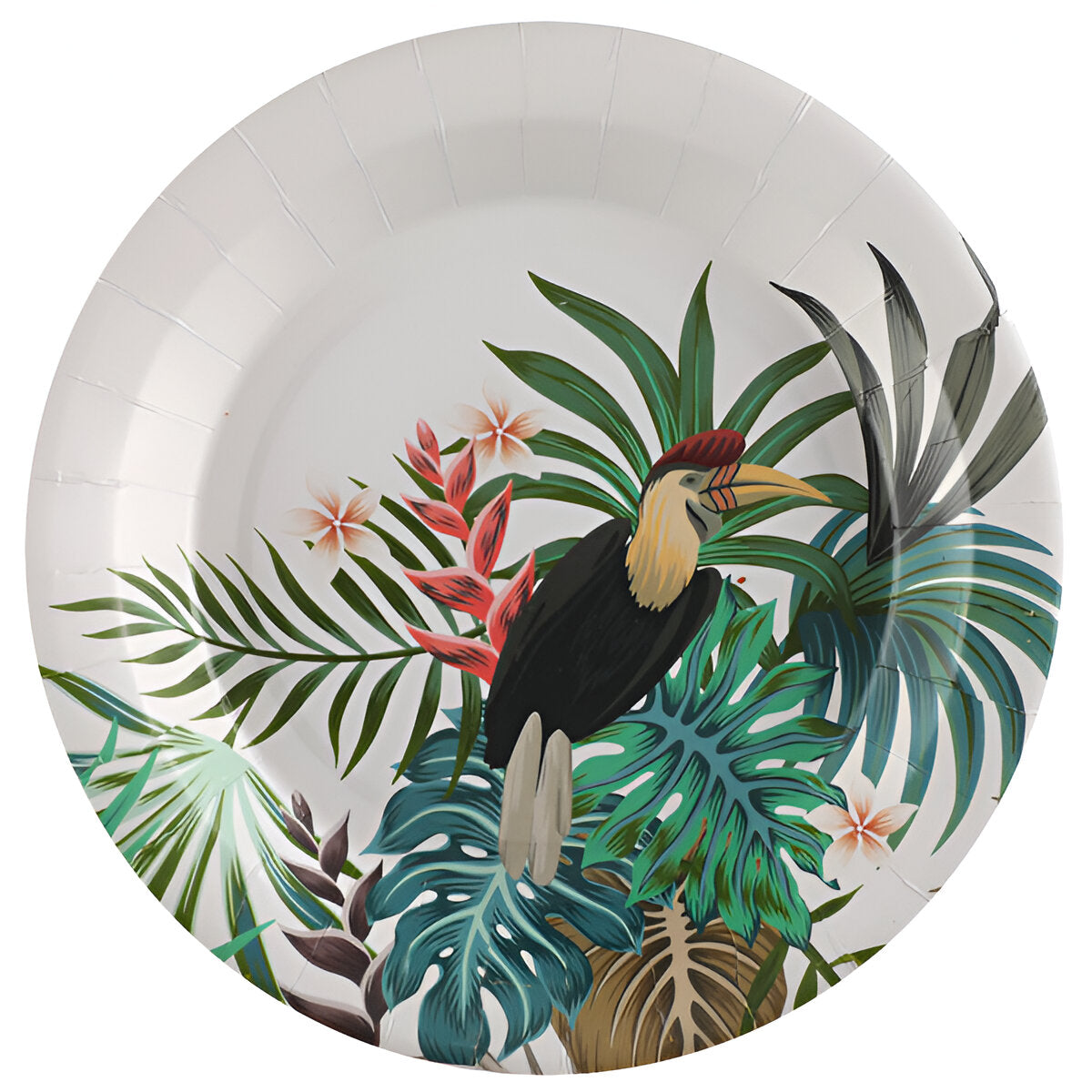 Πιάτα με τροπικά φύλλα και τουκάν. Δημιούργησε ένα όμορφο τραπέζι στο θεματικό πάρτυ!