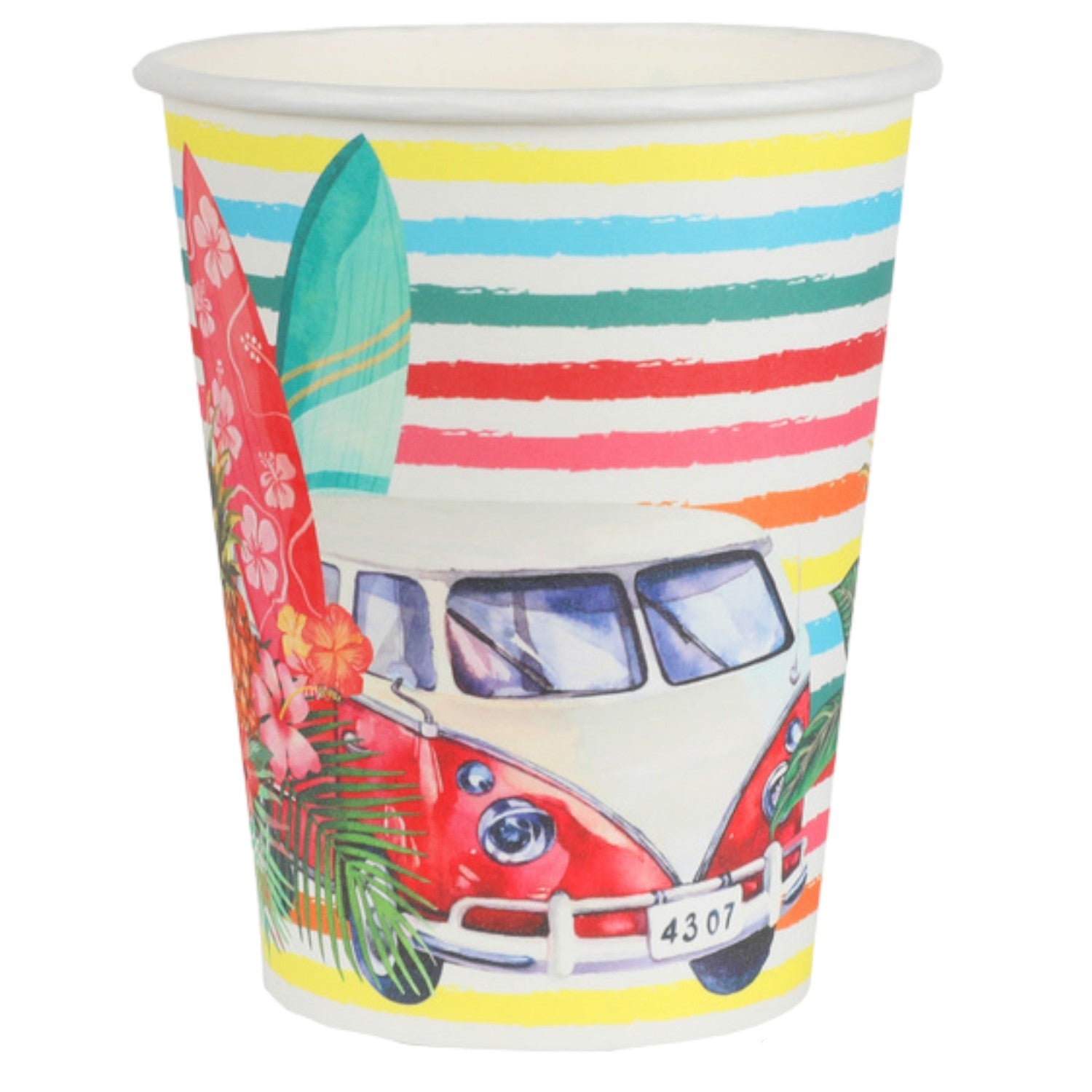 Ποτήρια Aloha με βανάκι, τροπικά λουλούδια και σανίδα του σερφ, για να διακοσμήσετε το γιορτινό τραπέζι και να κεράσετε τους καλεσμένους σας!