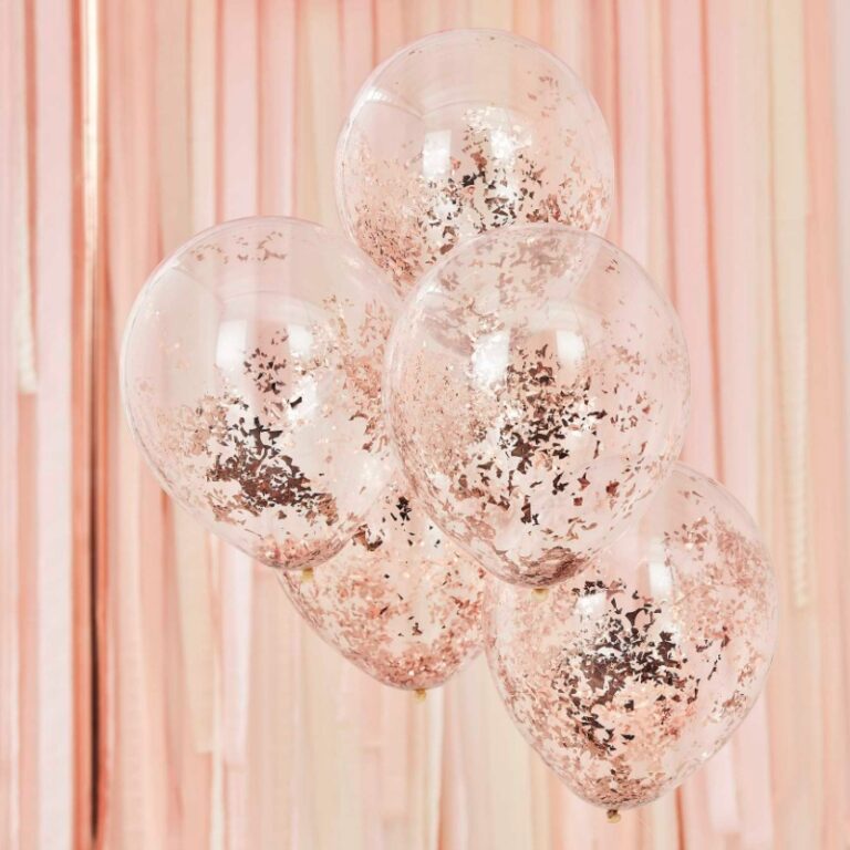 Εντυπωσιακά latex διάφανα μπαλόνια με ιδιαίτερο κομφετί σε rosegold απόχρωση, για μια μοναδική διακόσμηση στην εκδήλωση!