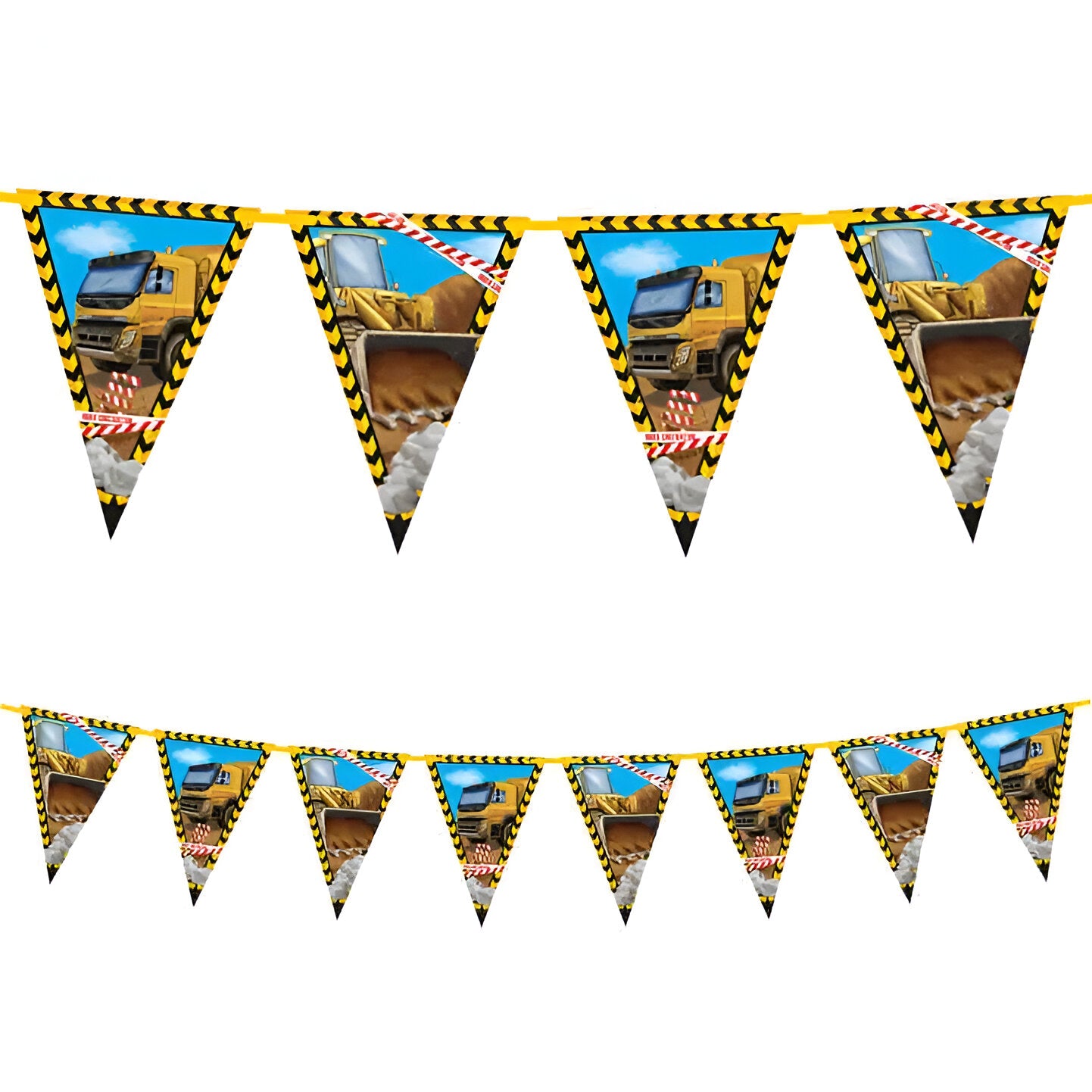 Τριγωνικά Σημαιάκια με Μπουλντόζα, Εκσκαφέα και άλλα οχήματα Εργοταξίου. Διακόσμησε μοναδικά το πάρτυ γενεθλίων και υποδέξου τους καλεσμένους σου!