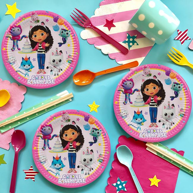 Πιάτα φαγητού για το τραπέζι του πάρτυ, με θέμα Gabby's Dollhouse!