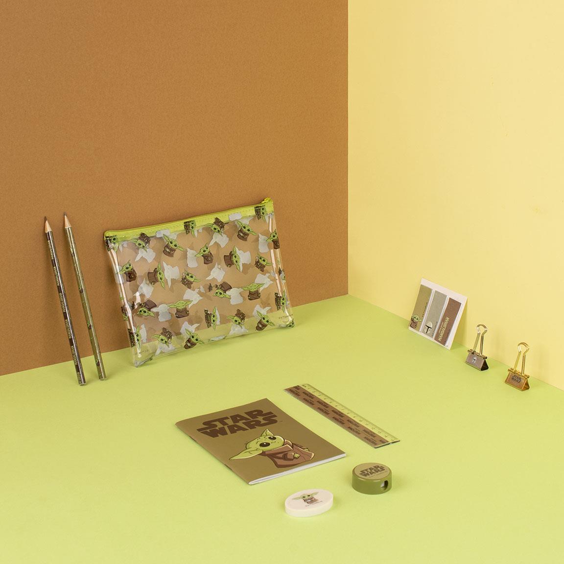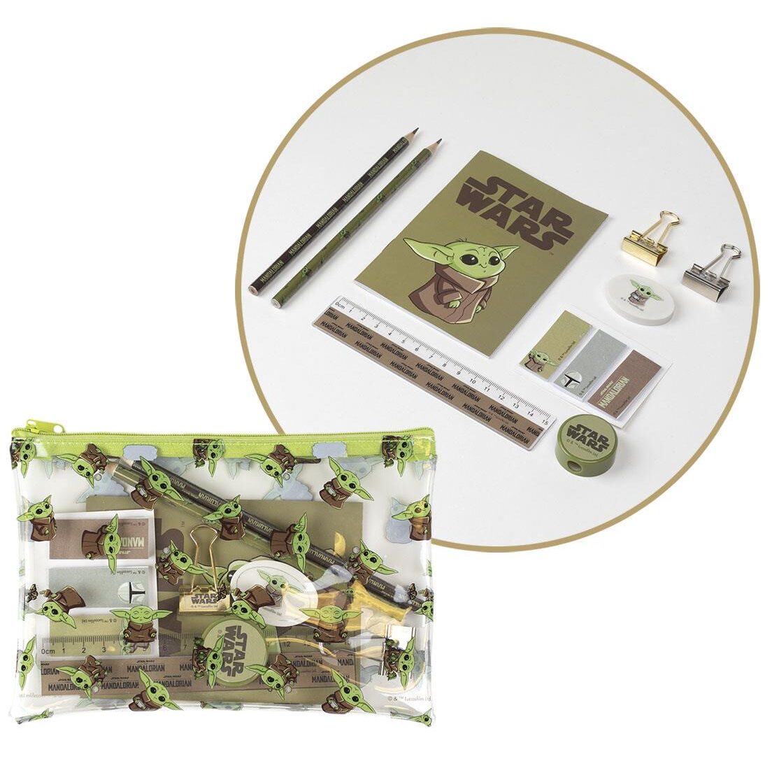 Κασετίνα γεμάτη σχολικά είδη με σχέδια του Mandalorian και του χαριτωμένου Baby Yoda. Ιδανική για μικρούς ή μεγάλους fan του Star Wars!