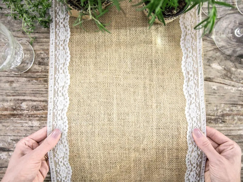 Υφασμάτινο Runner με λευκή δαντέλα για να δημιουργήσετε έναν υπέροχο και κομψό μπουφέ στο γάμο, τη βάπτιση ή την εκδήλωση!