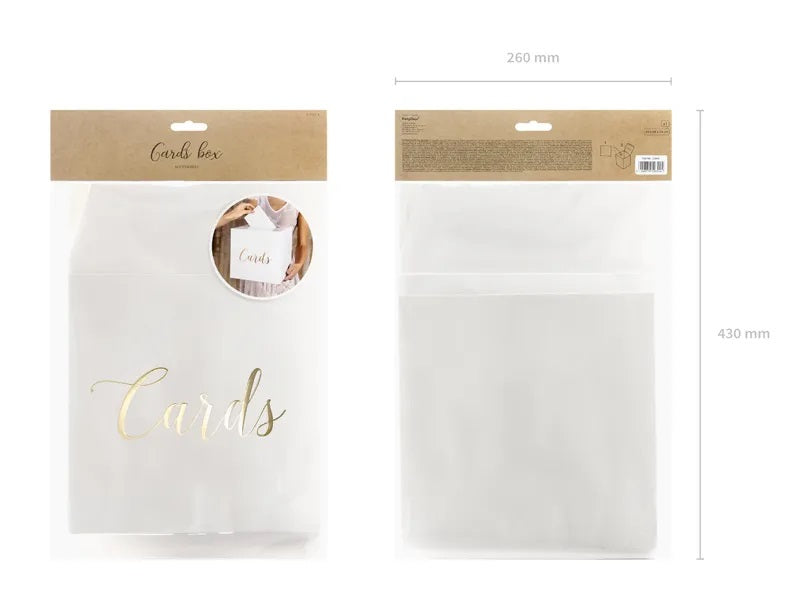 Λευκό χάρτινο κουτί με χρυσά μεταλλικά γράμματα "Cards" και υποδοχή για κάρτες ή φακελάκια από τους καλεσμένους του γάμου σας!