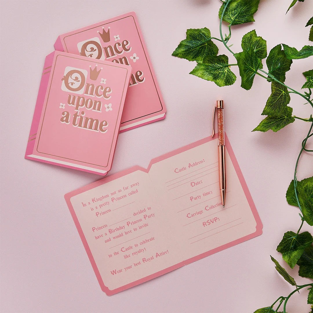 Παραμυθένιες προσκλήσεις σε σχήμα πριγκιπικού βιβλίου ''Once Upon a Time', για να προσφέρει στους καλεσμένους της η εορτάζουσα πριγκίπισσα!