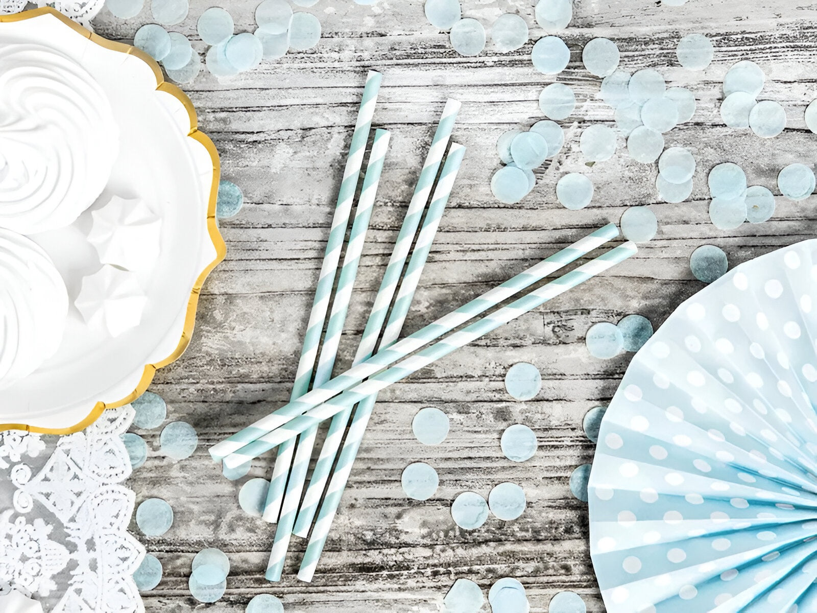 Καλαμάκια χάρτινα ριγέ γαλάζια - άσπρα. Υπέροχη επιλογή για διακόσμηση στο τραπέζι των γενεθλίων, της Βάπτισης ή οποιαδήποτε άλλη περίσταση!