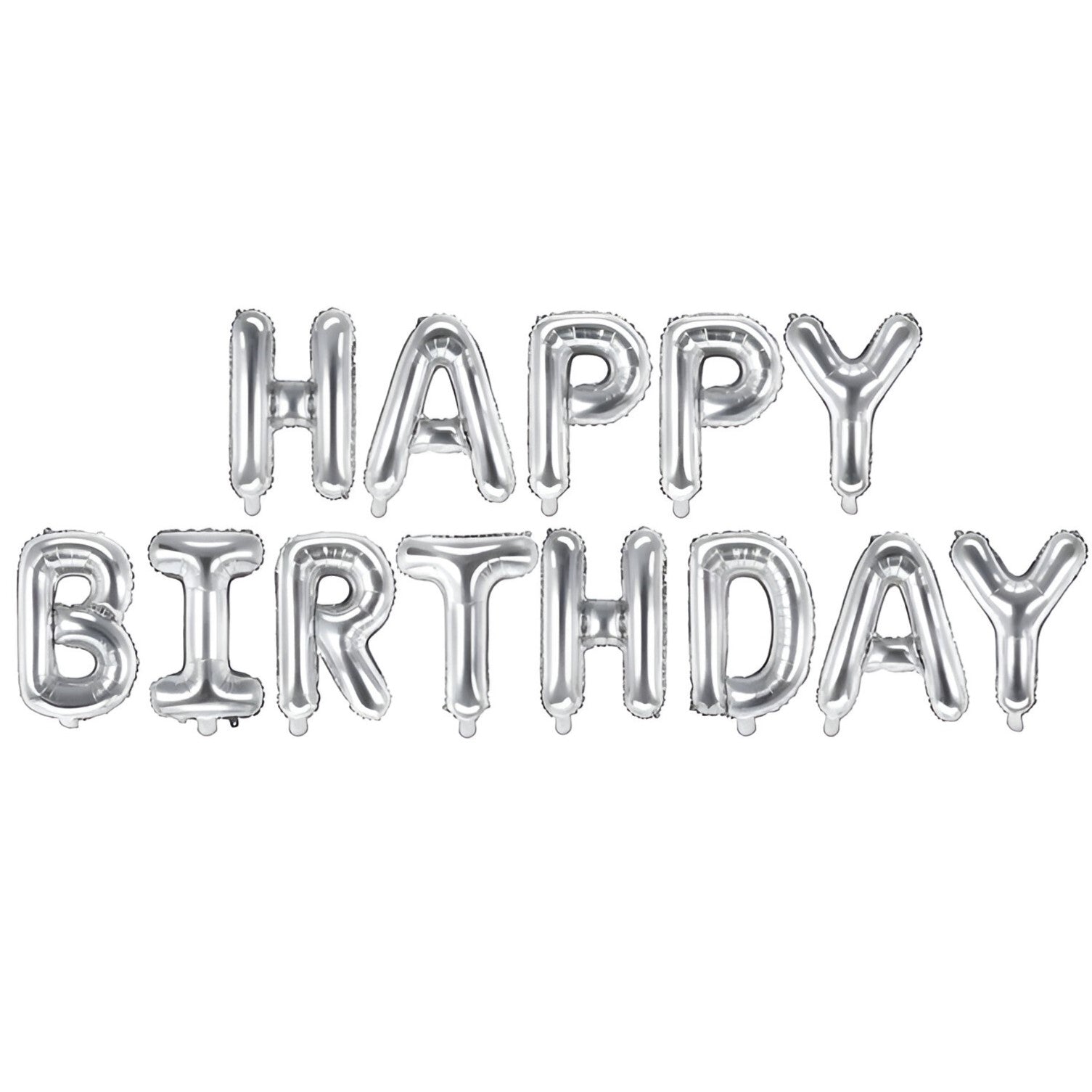 Σετ μπαλονιών "Happy Birthday" σε ασημί, για μια ξεχωριστή διακόσμηση πάρτυ ή για μια πρωτότυπη έκπληξη για να ευχηθείτε 'Χρόνια Πολλά'!