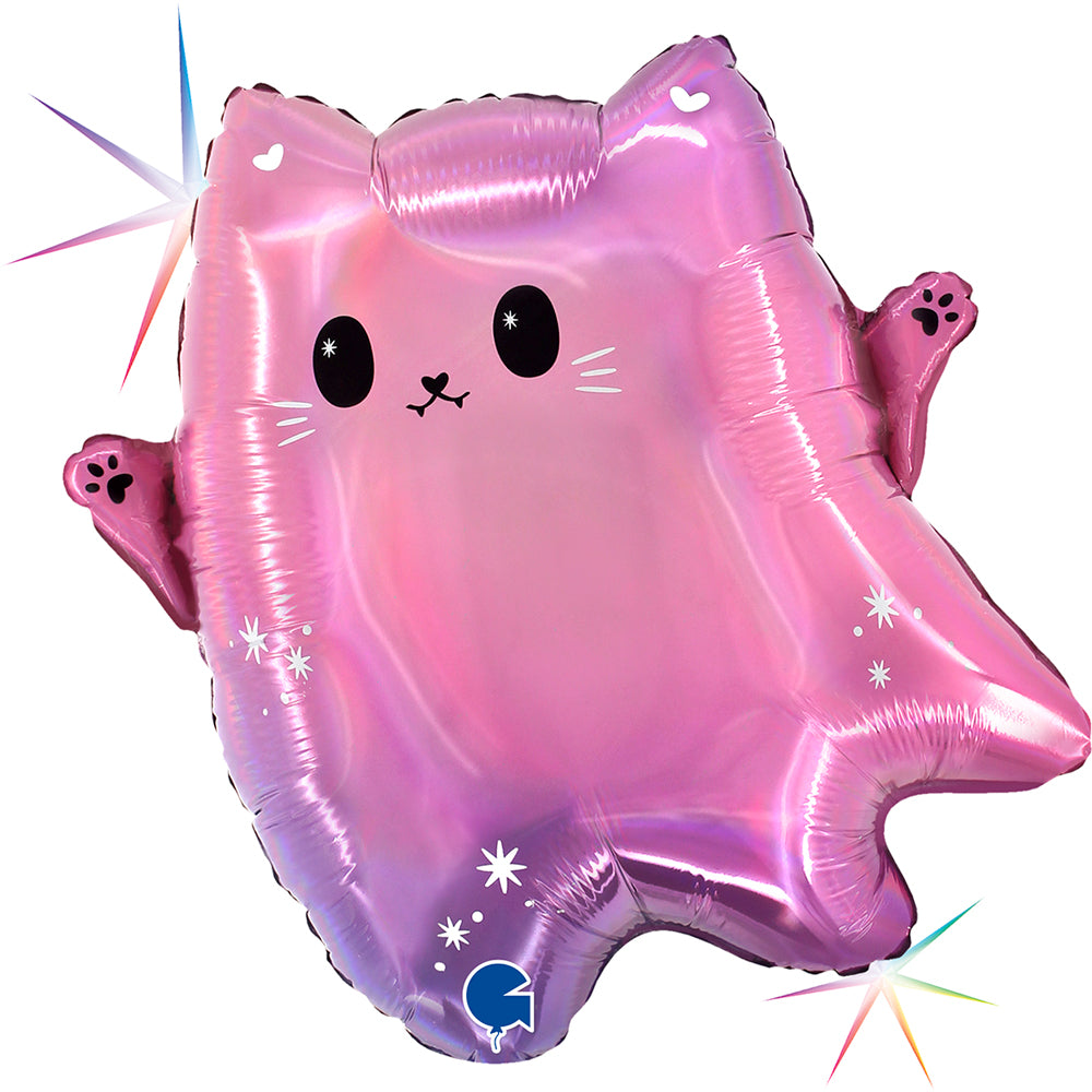 Μπαλόνι ροζ Holographic με σχέδιο γλυκό Φαντασματάκι Γατούλα για τη διακόσμηση του Halloween Πάρτυ!