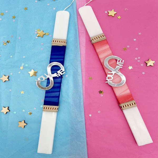 Πασχαλινές λαμπάδες για ζευγάρι με plexi διακοσμητικά με το άπειρο You & Me.
