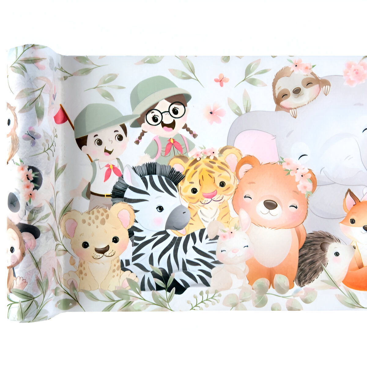 Runner τραπεζιού με χαριτωμένα ζωάκια της ζούγκλας και εξερευνητές σε Σαφάρι! Στόλισε όμορφα το τραπέζι του πάρτυ ή της βάπτισης και υποδέξου τους καλεσμένους σου!