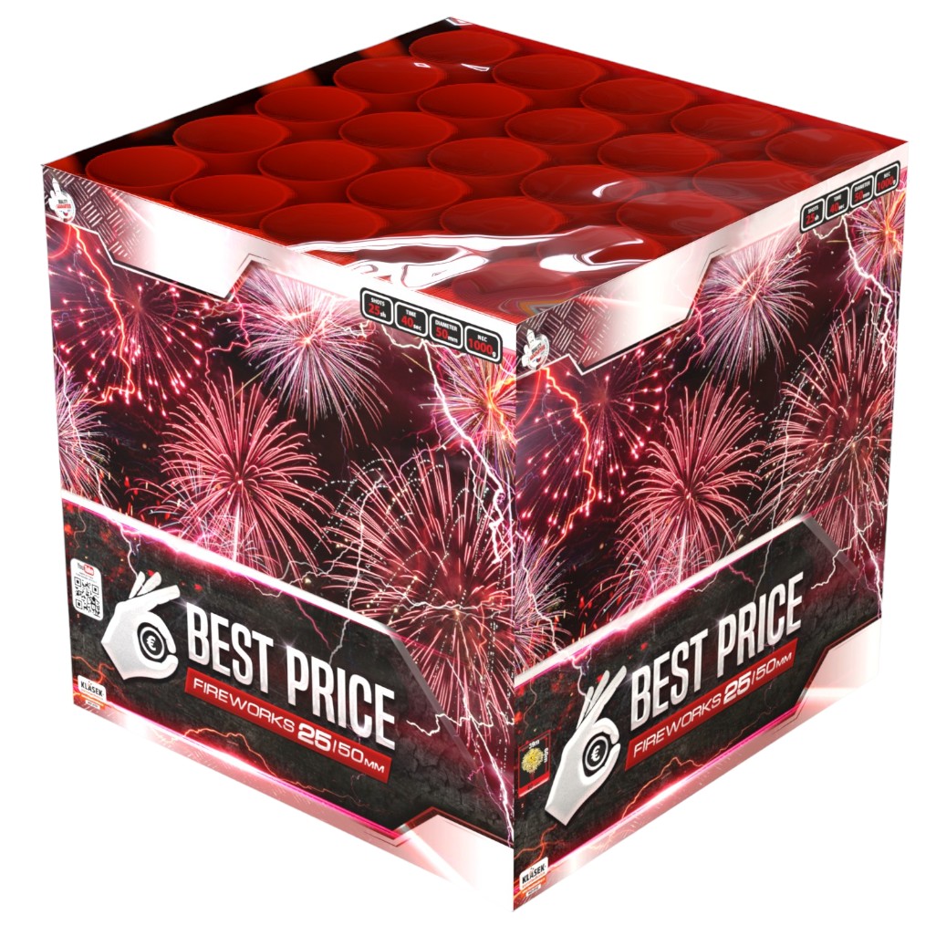 Εντυπωσιακό πυροτέχνημα Best Price με 25 υπέροχες εναέριες βολές με εναλλαγές χρωμάτων, εντυπωσιακές λάμψεις που τελειώνει με κράκλιν.