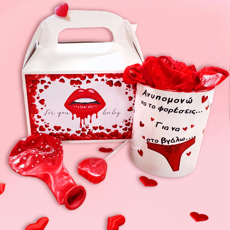 Κουτί για εκείνη με κούπα και εσώρουχο, για να χαρίσετε στην αγαπημένη σας και να δείξετε την αγάπη σας!Το σετ περιλαμβάνει: