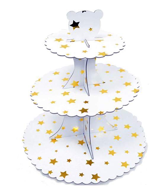 Βάση για Cupcake άσπρη με χρυσά Αστέρια από σκληρό χαρτόνι, ιδανική για να στολίσετε το τραπέζι των γενεθλίων, της Βάπτισης ή του Baby Shower!